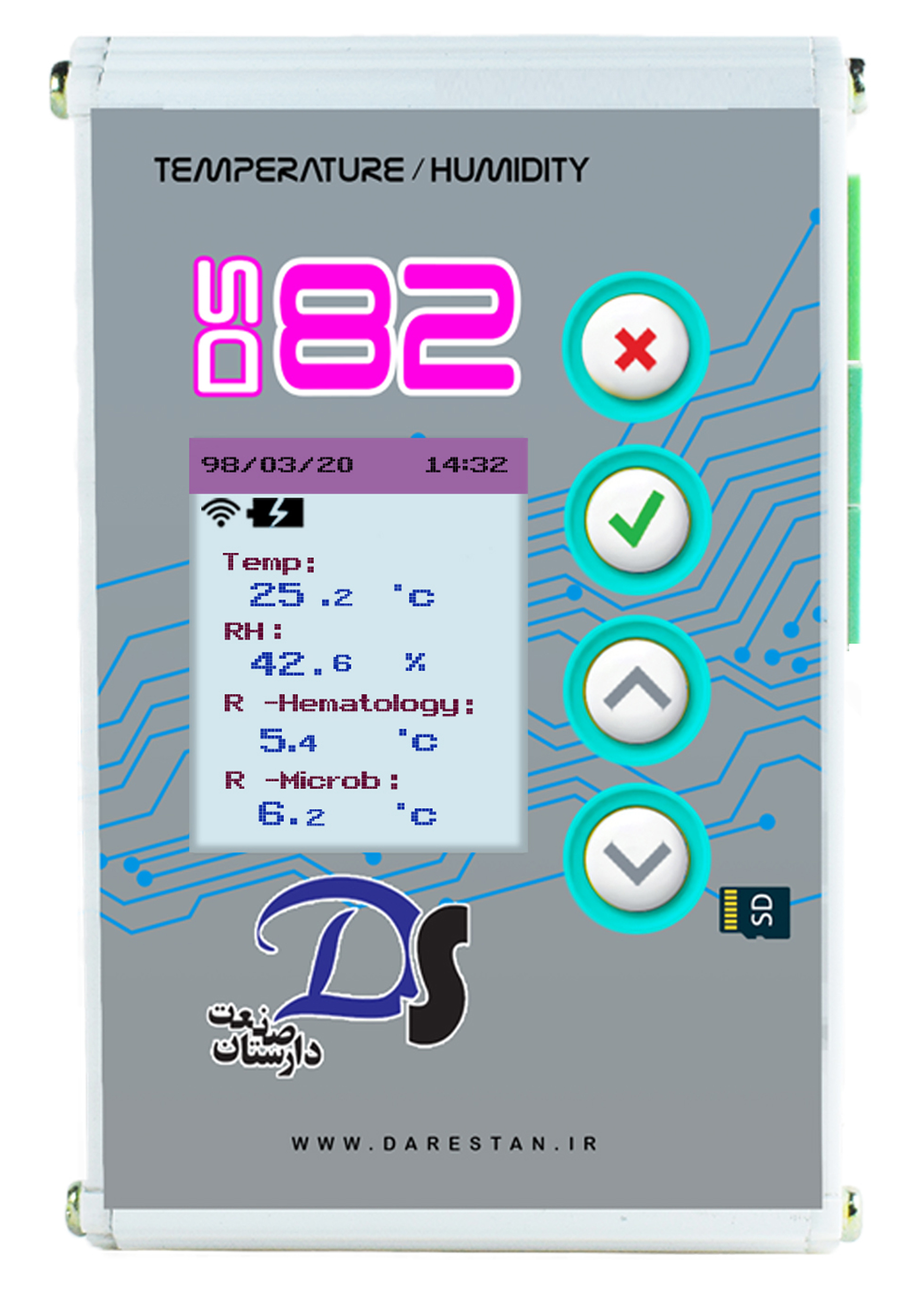 - دیتالاگر ثبت دما و ثبت رطوبت انبارهای نگهداری دارو