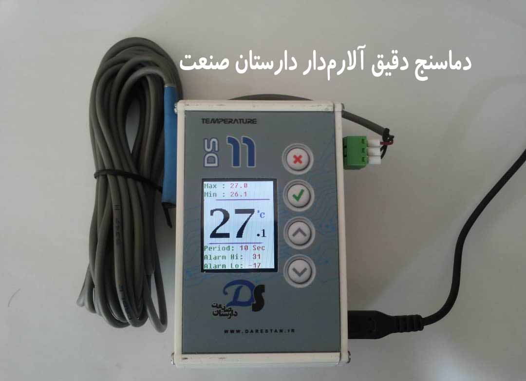 دماسنج دیجیتال ارزان قیمت آلارم دار ساخت شرکت دارستان صنعت دارای سنسور بسیار دقیق و صفحه نمایشی بزرگ و گرافیکی.