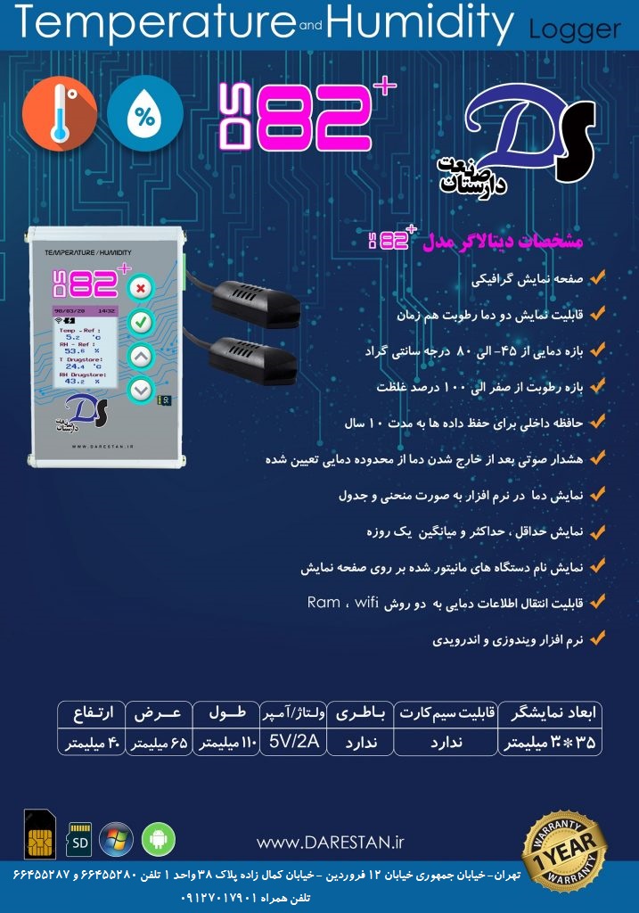 دیتالاگر مدل DS82+ قابلیت ثبت دما و رطوت را دارد