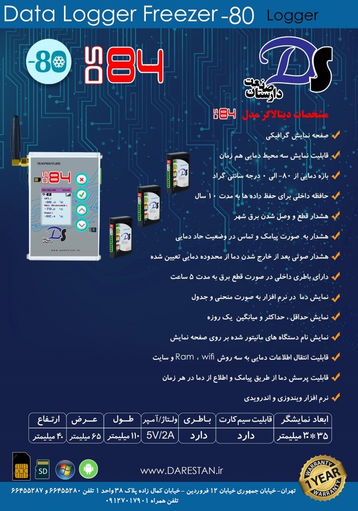 دستگاهی که بتواند میزان برودت و دما را در تانک ازت پایش و مانیتور کند مدل DS84 است.